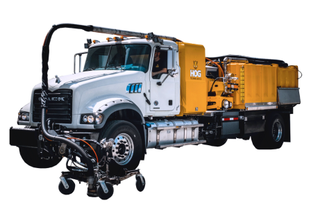 Hog Technologies' unique Stripe Hog system can quickly eliminate even the most resilient pavement markings while still protecting the integrity of the surface. The needle-sharp water jets blasting at 40,000 psi are able to penetrate the porous surface of the road surface and extract the paint or thermoplastic with the least amount of negative impact to the surface